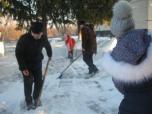 Учащиеся 6б класса вместе с классным руководителем Зараевой И.А. после проведённой с ними беседы убрали снег на обелиске Славы.