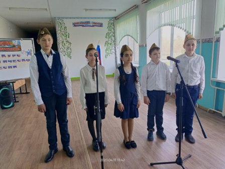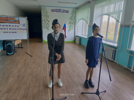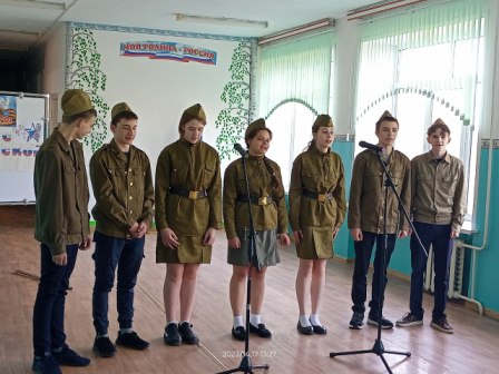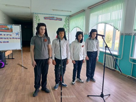 17 апреля состоялся конкурс патриотической песни "Победа в сердце каждого", в котором приняли участие учащиеся 1-9 классов.  Победителями конкурса стали  учащиеся: 1б класса (песня Победа"), 8б класса (песня "Я внук того солдата") и вокальная группа юношей 9б класса ("Песенка фронтового шофёра").