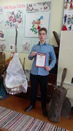 Экскурсовод школьного музея "Путешествие в прошлое" Марков Сергей занял 2 место в муниципальном этапе Всероссийского конкурса музеев образовательных организаций. Номинация "Лучший экскурсовод музея образовательной организации.