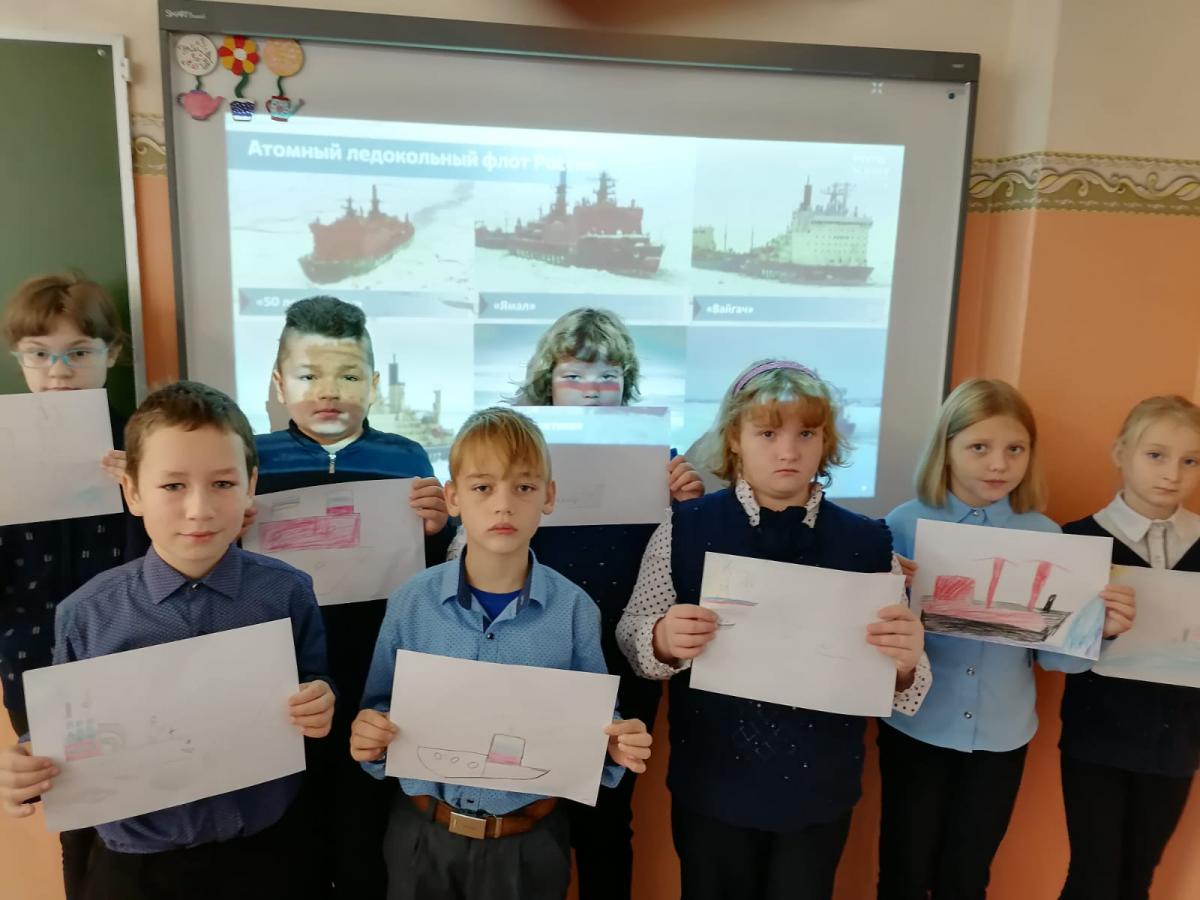 24 октября  прошло очередное мероприятие в рамках Всероссийского проекта “Разговоры о важном”. Цель мероприятия состояла в формировании ценностного отношения к многообразию и природному богатству России и гражданско идентичности на примере великих исследователей Арктики. Вспомнили историю Северного морского пути. Первые ледоколы были  на паровых двигателях. На смену им пришли  дизель-электрические ледоколы.  Нашими .выдающимися  учеными, инженерами-конструкторами, судостроителями  были созданы атомные ледоколы, которые могут работать без дозаправки более пяти лет.  Именно благодаря им в России имеется единственный в мире атомный ледокольный флот. Фото наших легендарных ледоколов “Ямал”, “50 лет Победы”, “Таймыр”, “Вайгач” и др.,   факты о каждом из них заинтересовали каждого.