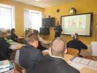 Школьная линейка началась зажигательным танцем. Директор школы Елена Александровна, Деева Татьяна Алексеевна, Отец Петр поздравили всех с началом учебного года. Первый школьный звонок пригласил всех на классный час.