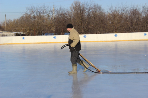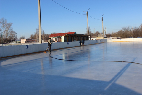С наступлением холодов учитель физической культуры А.Н. Зарочинцев, рабочий Л.Д. Чемисов, ученик 11 класса А. Шеменёв и игроки хоккейной команды «Нива» приступили к заливке льда.